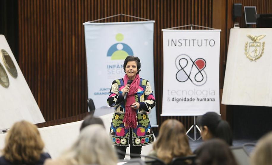 A chefe do departamento de Política para Criança, Adolescente e Idoso da Sejuf, Ângela Mendonça e a assessora técnica do Departamento de Justiça da Secretaria de Estado da Justiça, Família e Trabalho do Paraná, Ceneiva Tono, também falaram sobre os cuidados no uso das tecnologias e sobre a garantia dos direitos das crianças, adolescentes e idosos.