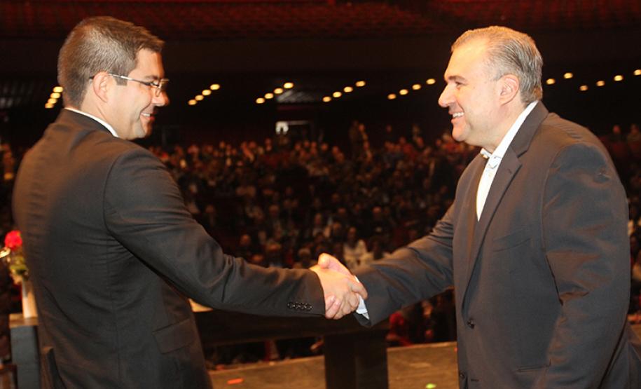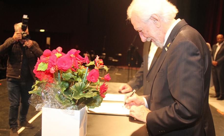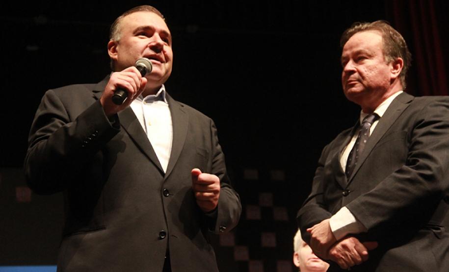 O Governo do Estado, por meio da Secretaria da Justiça, Família e Trabalho (Seju), firmou nesta quarta-feira (15) convênios que beneficiam mais de 100 municípios e instituições. Os convênios foram assinados e repassados pelo vice-governador Darci Piana e pelo secretário da Sejuf, Ney Leprevost, durante o evento no Teatro Guaíra em comemoração ao Dia Internacional da Família, no intuito de beneficiar milhares de famílias por todo o estado. Participou também do evento a primeira-dama Luciana Saito Massa.