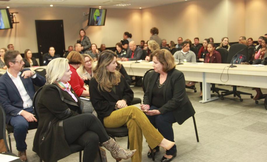 PLANO DE TRABALHO COM MUNICÍPIOS - Logo após a assinatura, o Departamento da Mulher e a assessoria de Gestão de Inovação e Tecnologia da Sejuf reuniram-se com nove municípios que participam do projeto-piloto do botão do pânico, para esclarecer questões e apresentar o novo modelo desenvolvido em conjunto com a Celepar, que vai facilitar e dar mais celeridade ao atendimento das chamadas.