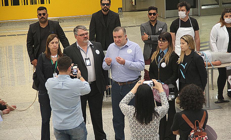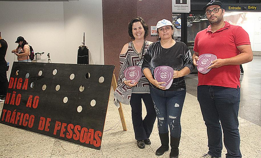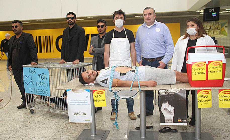 Uma grande ação de conscientização movimentou o Aeroporto Afonso Pena em Curitiba, nesta sexta-feira (26). Foram realizadas ações para alertar a população sobre os verdadeiros riscos que o tráfico de pessoas apresenta. O secretário da Justiça, Família e Trabalho, Ney Leprevost, lidera as ações de enfrentamento ao tráfico de pessoas no Paraná. No governo federal, o mesmo trabalho é encabeçado pelo ministro Sérgio Moro. “As ações são para conscientizar a população de que este crime é real e que existe, por isso estamos promovendo neste mês diversas ações como essa no aeroporto, para que seja possível combater o tráfico humano no Paraná e no Brasil”, disse Leprevost.