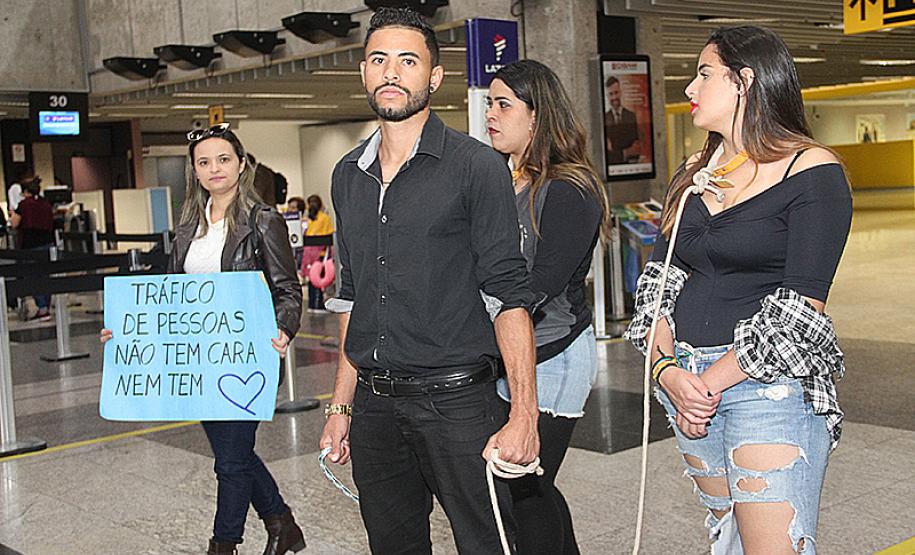 Ações de impacto, com a orientação e panfletagens indicando números para denúncias, simulações de tráfico com bagagens nas esteiras, atores interpretando aliciadores, além de cartazes e flyers personalizados mostrando os verdadeiros riscos que o tráfico pode levar, chamaram a atenção das pessoas que circulavam pelo aeroporto.