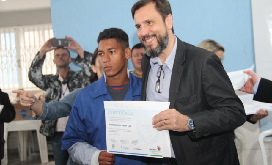 A primeira turma do curso técnico de Mecânica Industrial Básica do programa Carretas do Conhecimento formou 52 alunos no bairro Uberaba, em Curitiba, nesta terça-feira (13). A entrega dos certificados foi feita pelo secretário da Justiça, Família e Trabalho do Governo do Paraná, Ney Leprevost, na Associação Marumbi II.