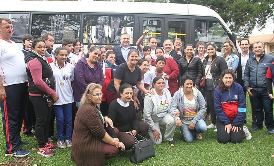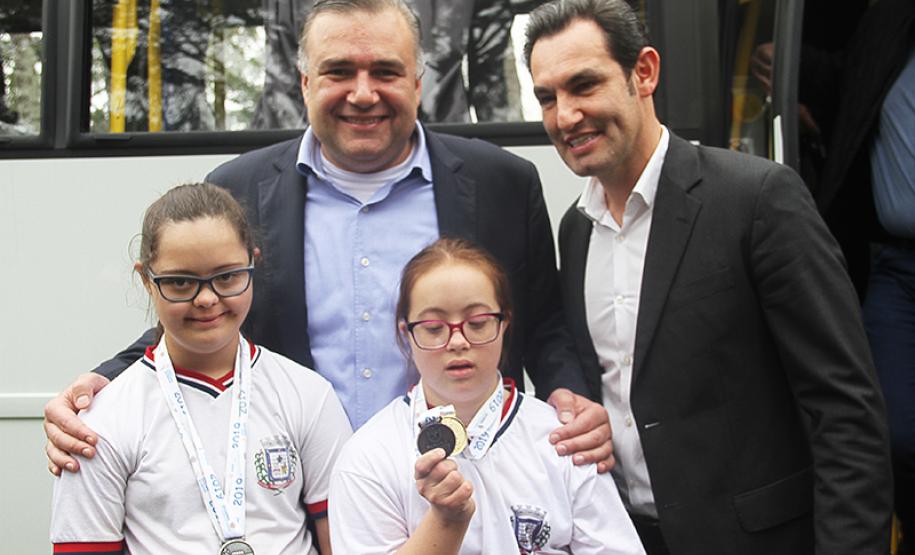 As chaves foram entregues pelo secretário Ney Leprevost ao prefeito Marcelo Puppi, na presença de dezenas de crianças com deficiência que comemoravam as medalhas conquistadas nos Jogos Escolares Paradesportivos do Paraná. O veículo, com rampa elevatória para cadeirantes e capacidade para transportar 15 pessoas por vez com todo conforto e segurança, possui ainda espaço para mais dois cadeirantes e será utilizada pela Associação do Deficiente Físico de Campo Largo. “A Van vai permitir a acessibilidade e o transporte de pessoas com deficiência, contribuindo com a permanência, o sucesso e a inclusão social dos alunos”, disse Leprevost, reafirmando que o município é parceiro nos programas Força Tarefa e Criança Feliz, da Sejuf.