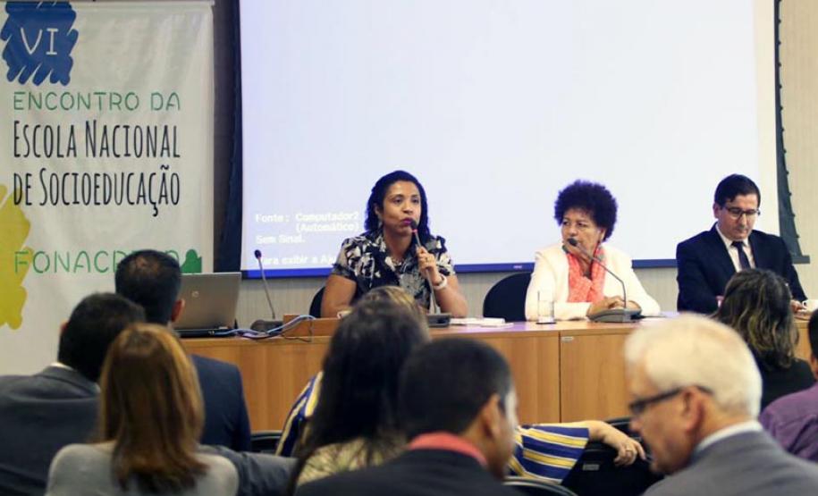 O encontro reuniu gestores dos sistemas socioeducativos de 18 estados e do Distrito Federal e contou com a participação da Secretária Nacional dos Direitos da Criança e do Adolescente, Petrúcia de Melo Andrade, e da Coordenadora Nacional do Sistema Nacional de Atendimento Socioeducativo (Sinase), Giselle da Silva Cyrillo.