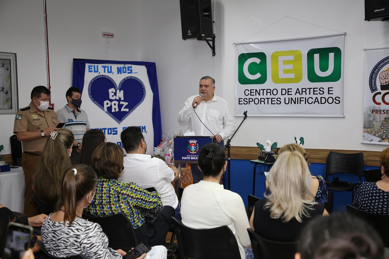 Participaram do evento, além do secretário Ney Leprevost e dos prefeitos, o vereador de Pato Branco Dirceu Boareto, técnicos da Secretaria de Justiça, Família e Trabalho, professores, conselheiros tutelares, integrantes das Associações de Pais e Mestres.